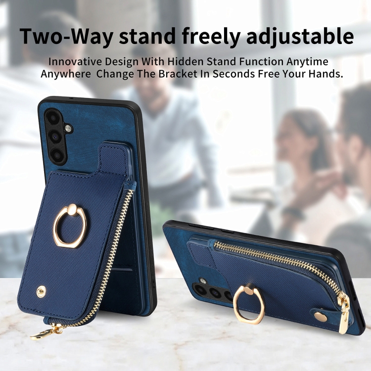 Funda para Teléfono Samsung Galaxy A21S con Anillo de Cuero Cruzado Cremallera Vertical y Billetera Trasera (Azul)