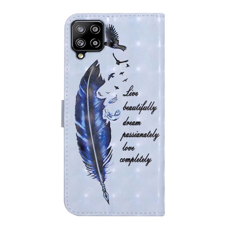 Funda de Cuero Samsung Galaxy A22 4G Dibujo 3D En Relieve al Óleo (Pluma Azul)