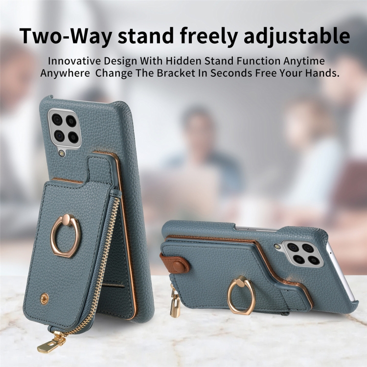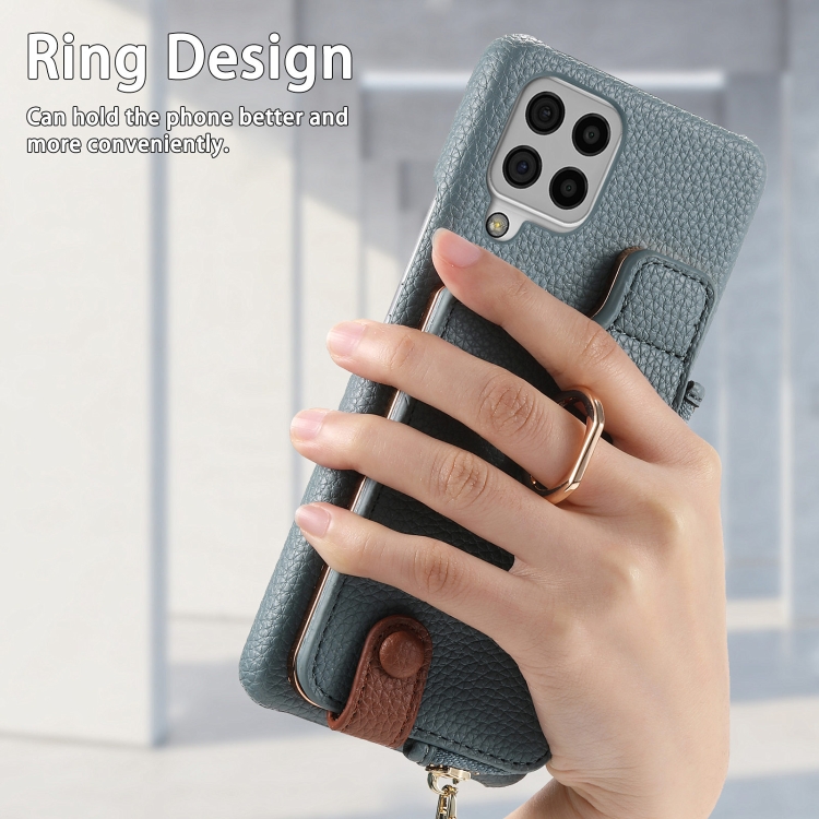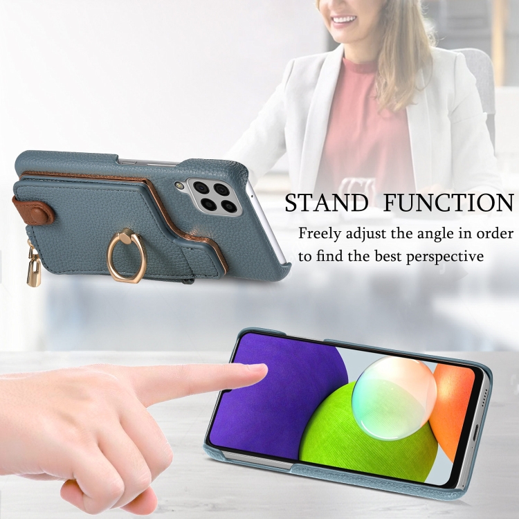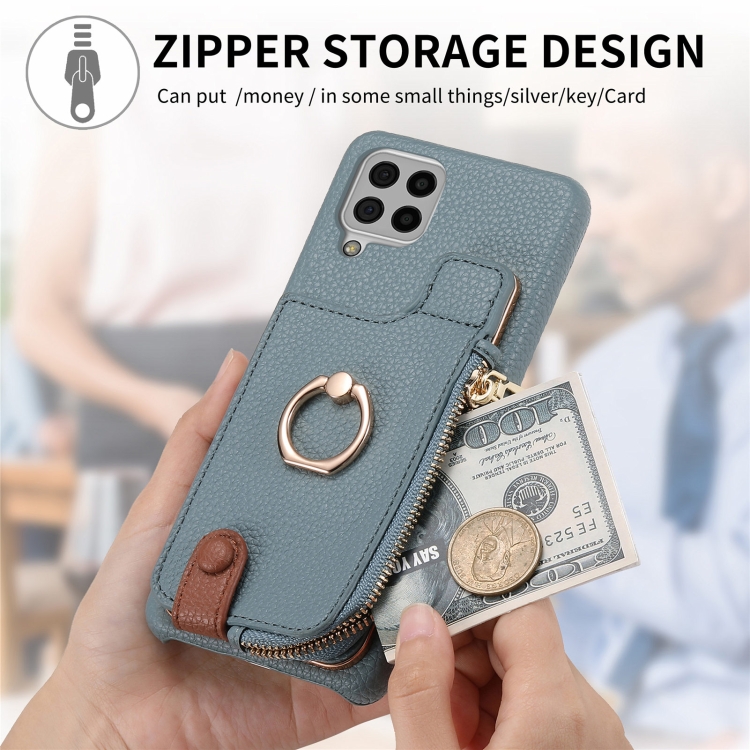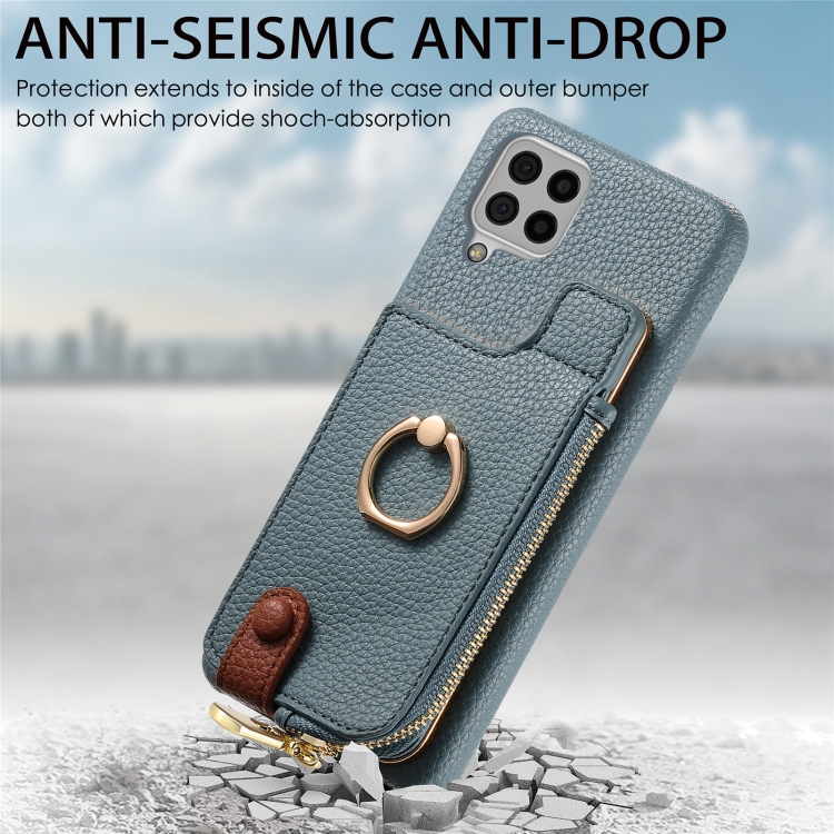 Funda para Samsung Galaxy A22 4G Litchi Leather Oil Edge Ring Zipper Wallet Back (Azul)