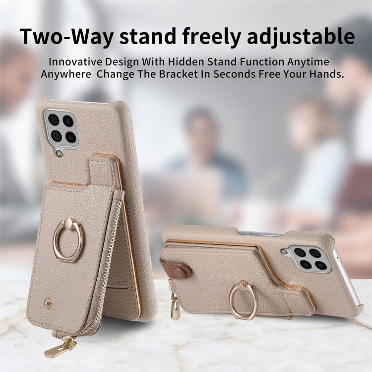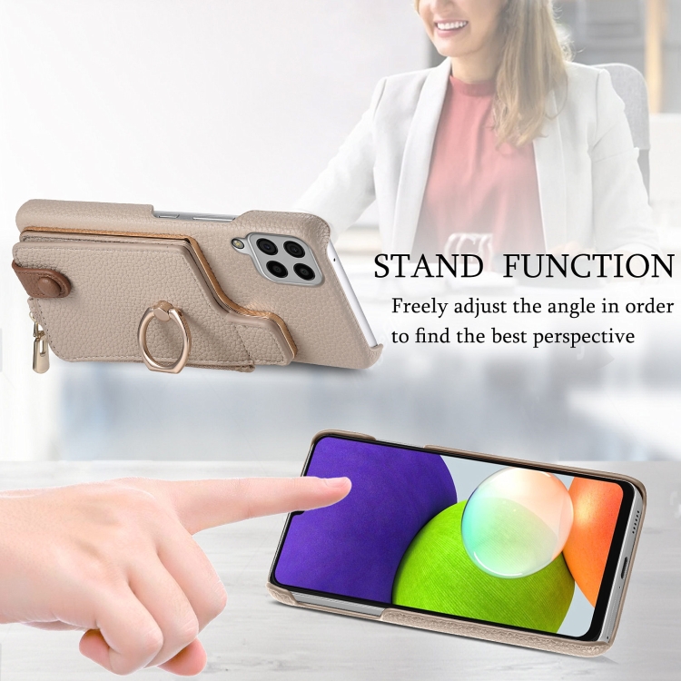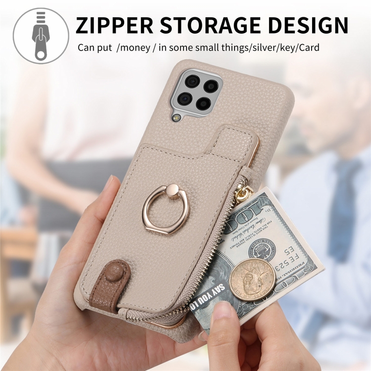 Funda para Samsung Galaxy A22 4G Litchi Leather Oil Edge Ring Zipper Wallet Back (Blanco)