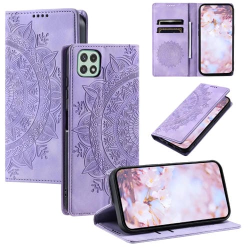 Estuche para Teléfono Samsung Galaxy A22 5G / A22S 5G Cuero Magnético Relieve de Tótem (Púrpura)