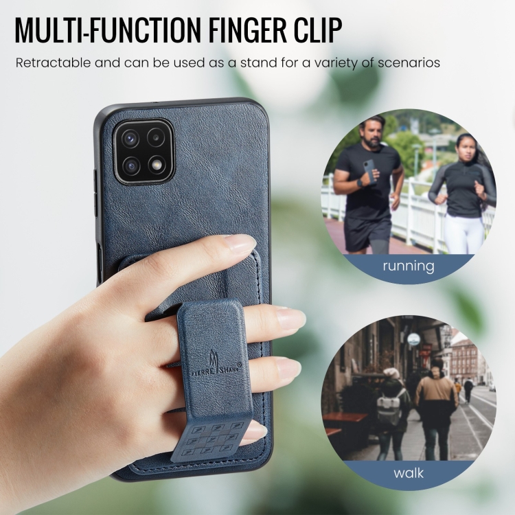 Funda para Teléfono Samsung Galaxy A22 5G Fierre Shann Oil Wax con Tarjetero de Cuero de Vaca (Azul)