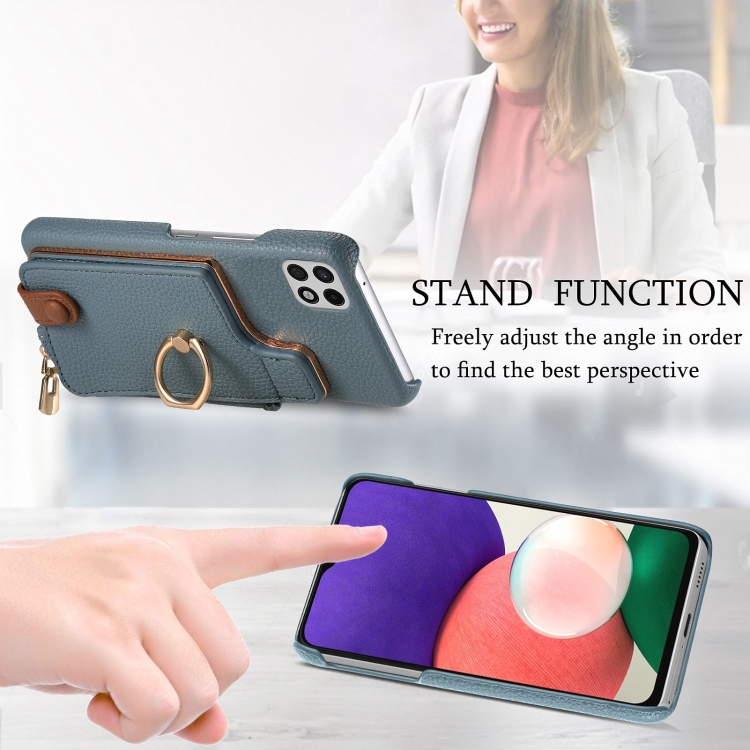 Funda para Samsung Galaxy A22 5G Litchi Leather Oil Edge Ring Zipper Wallet Back (Azul)