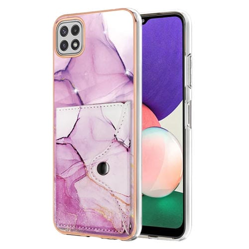 Estuche para Teléfono Samsung Galaxy A22 5G EE.UU con Ranura para Tarjeta IMD Patrón Mármol (Oro Rosa Púrpura)
