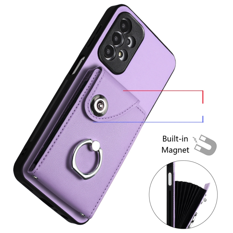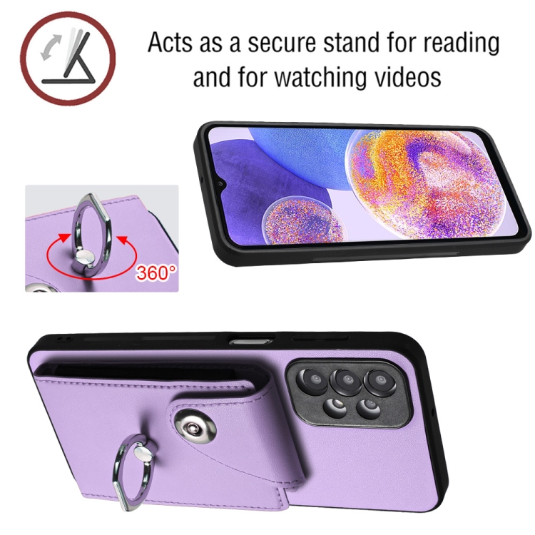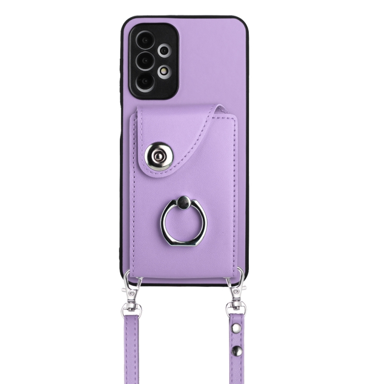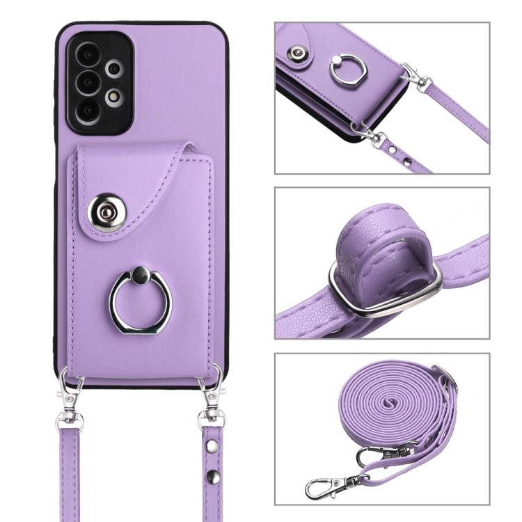Funda para Teléfono Samsung Galaxy A23 165,4mm con Soporte para Anillo y Bolsa para Tarjeta con Cordón Largo (Púrpura)