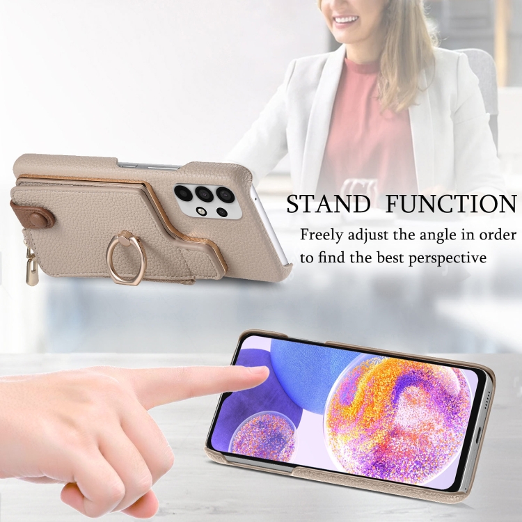 Funda para Teléfono Samsung Galaxy A23 Litchi Leather Oil Edge Ring Zipper Wallet Back (Blanco)
