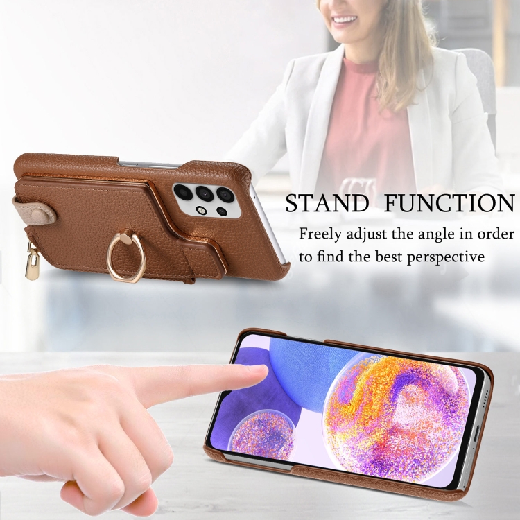 Funda para Teléfono Samsung Galaxy A23 Litchi Leather Oil Edge Ring Zipper Wallet Back (Marrón)