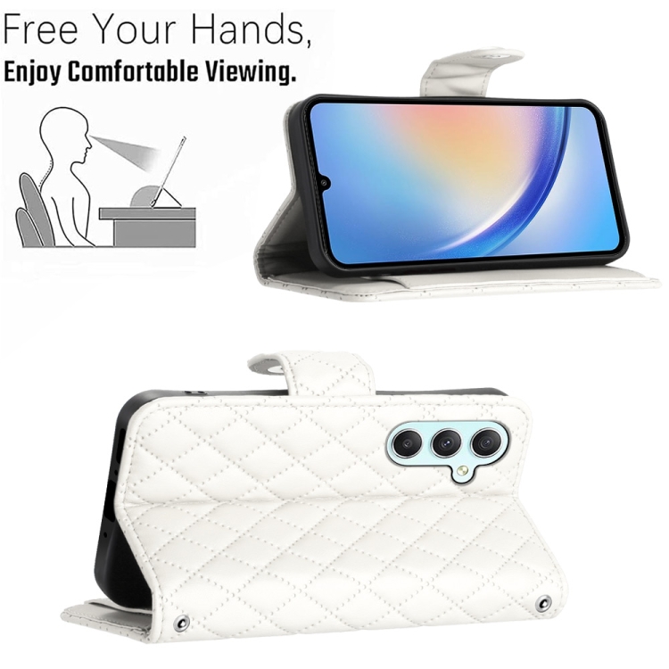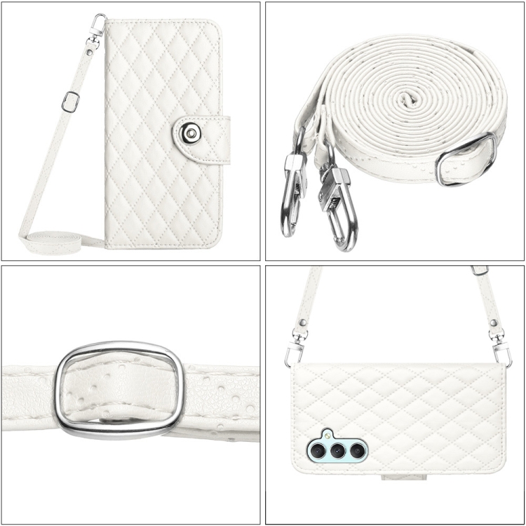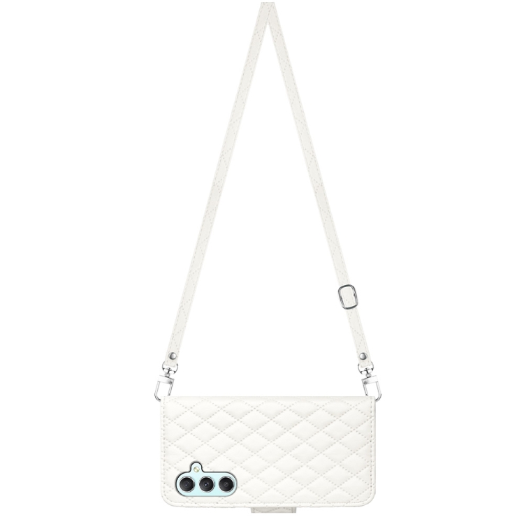 Funda para Samsung Galaxy A24 4G de Cuero con Tapa Textura Romboidal y Cordón Largo (Blanco)