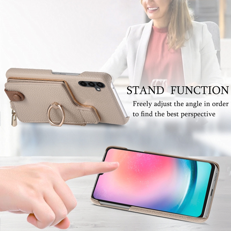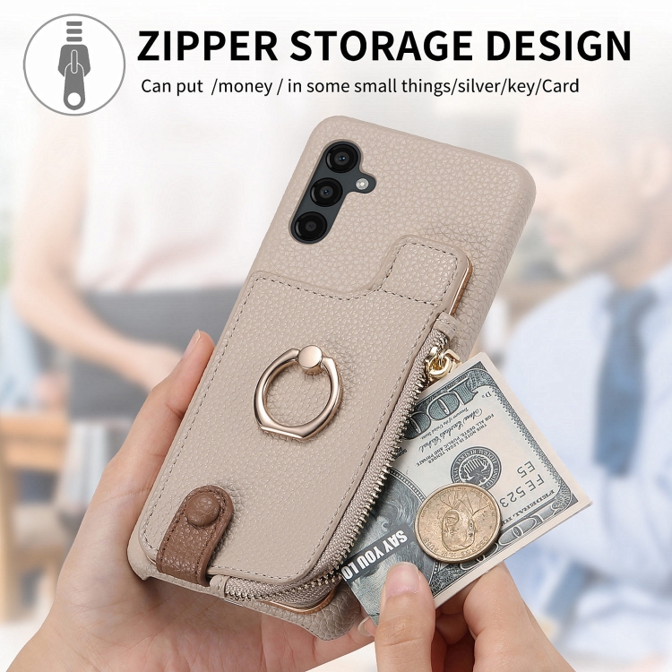 Funda para Teléfono Samsung Galaxy A24 Litchi Leather Oil Edge Ring Zipper Wallet Back (Blanco)