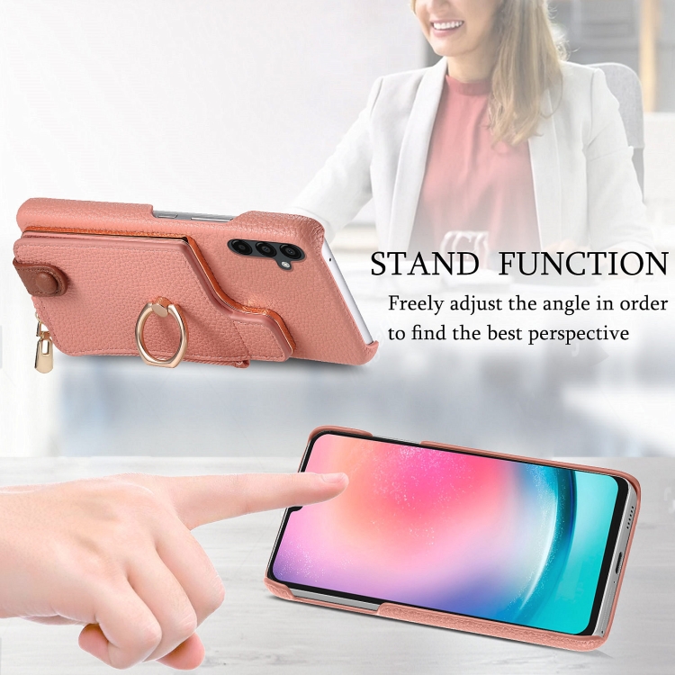 Funda para Teléfono Samsung Galaxy A24 Litchi Leather Oil Edge Ring Zipper Wallet Back (Rosa)