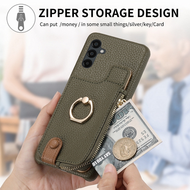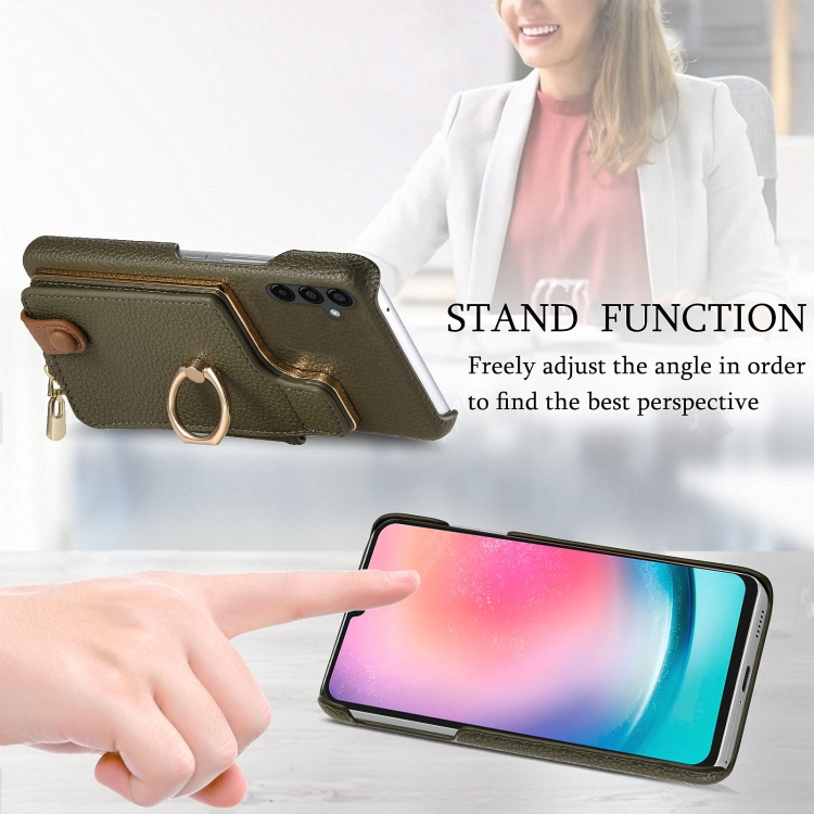 Funda para Teléfono Samsung Galaxy A24 Litchi Leather Oil Edge Ring Zipper Wallet Back (Verde)