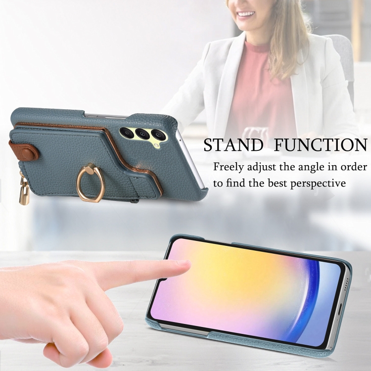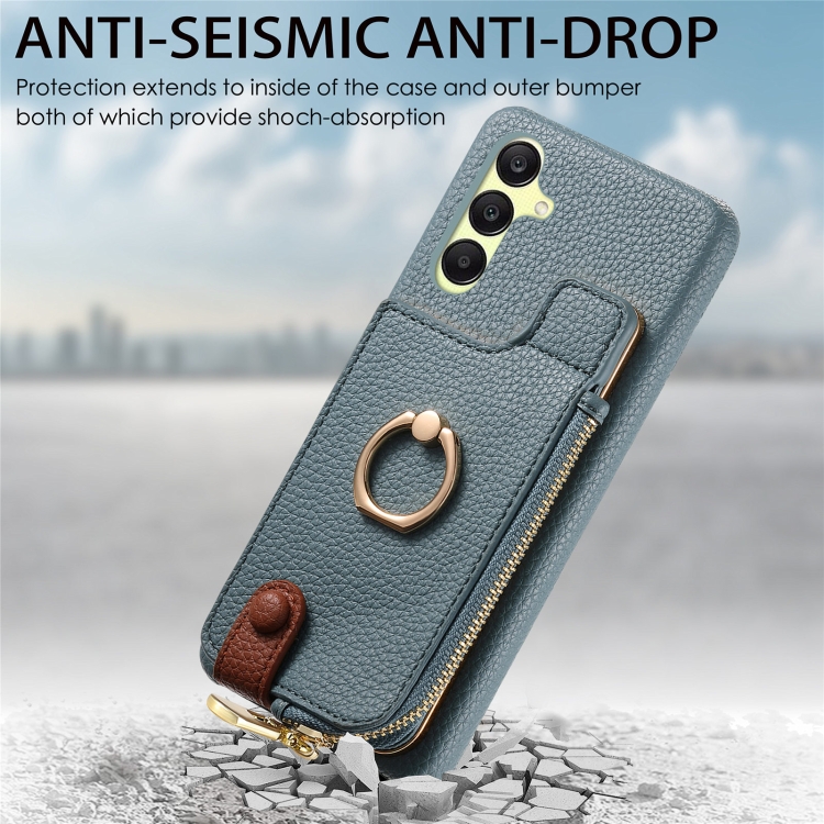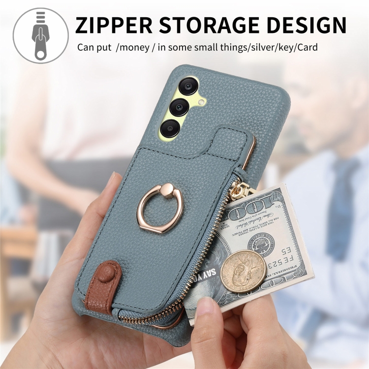 Funda para teléfono Samsung Galaxy A25 Litchi Leather Oil Edge Ring Zipper Wallet Back (Azul)