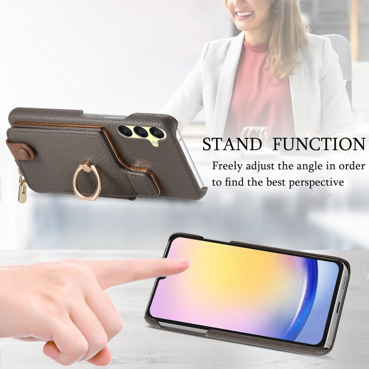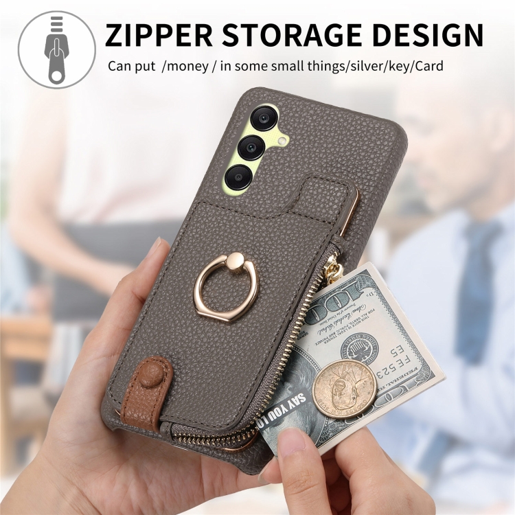 Funda para Samsung Galaxy A25 Litchi Leather Oil Edge Ring Zipper Wallet Back (Gris)