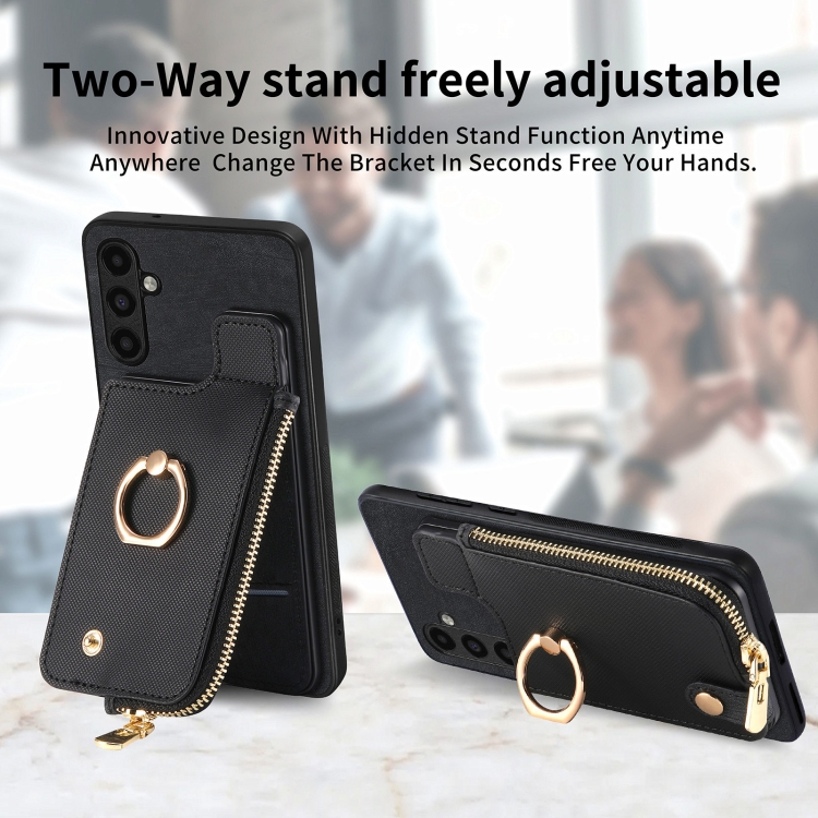 Estuche para Teléfono Samsung Galaxy A31 con Billetera, Cremallera Vertical y Anillo de Cuero Cruzado (Negro)