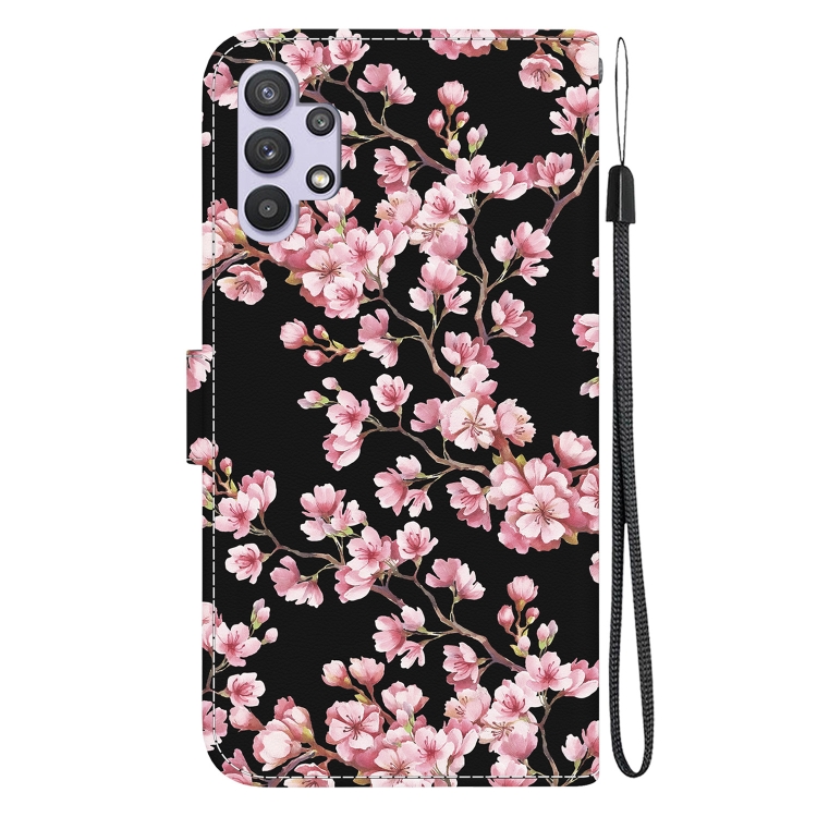 Funda de Cuero Samsung Galaxy A32 4G con Dibujo Coloreado y Textura de Cristal (Flor de Ciruelo)