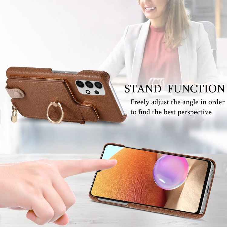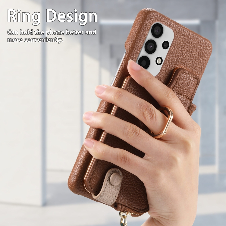 Funda para Teléfono Samsung Galaxy A32 4G Litchi Leather Oil Edge Ring Zipper Wallet Back (Marrón)