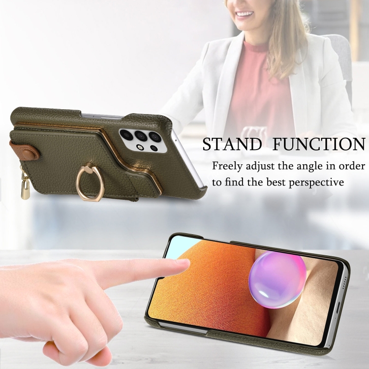 Funda para Teléfono Samsung Galaxy A32 4G Litchi Leather Oil Edge Ring Zipper Wallet Back (Verde)