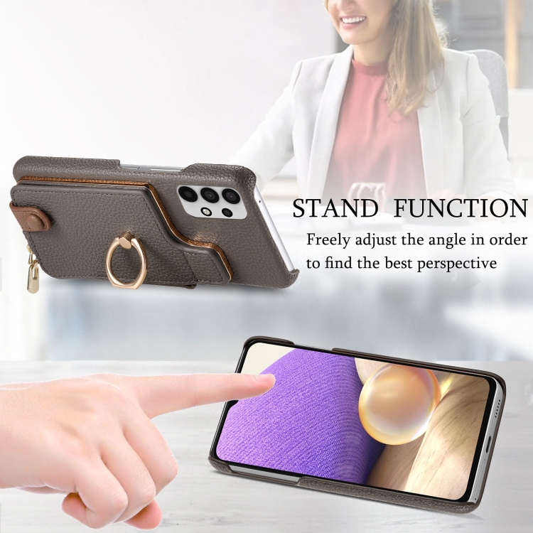 Funda para Teléfono Samsung Galaxy A32 5G Litchi Leather Oil Edge Ring Zipper Wallet (Gris)