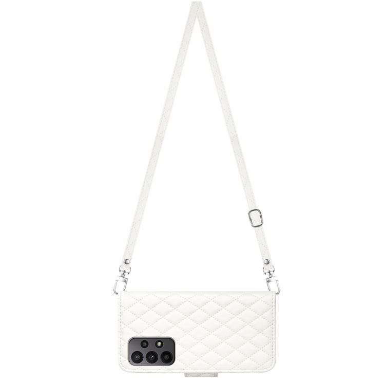 Funda para Samsung Galaxy A33 5G Cuero con Tapa Textura Romboidal y Cordón Largo (Blanco)