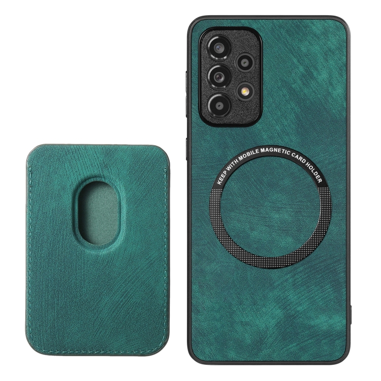 Funda de teléfono Samsung Galaxy A33 5G magnética con bolsa de tarjeta de cuero retro (Verde)