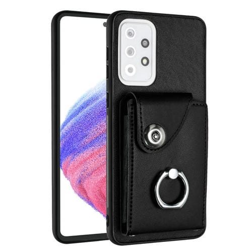 Funda para Teléfono Samsung Galaxy A33 5G Pu con Soporte para Anillo y Bolsa para Tarjeta (Negro)