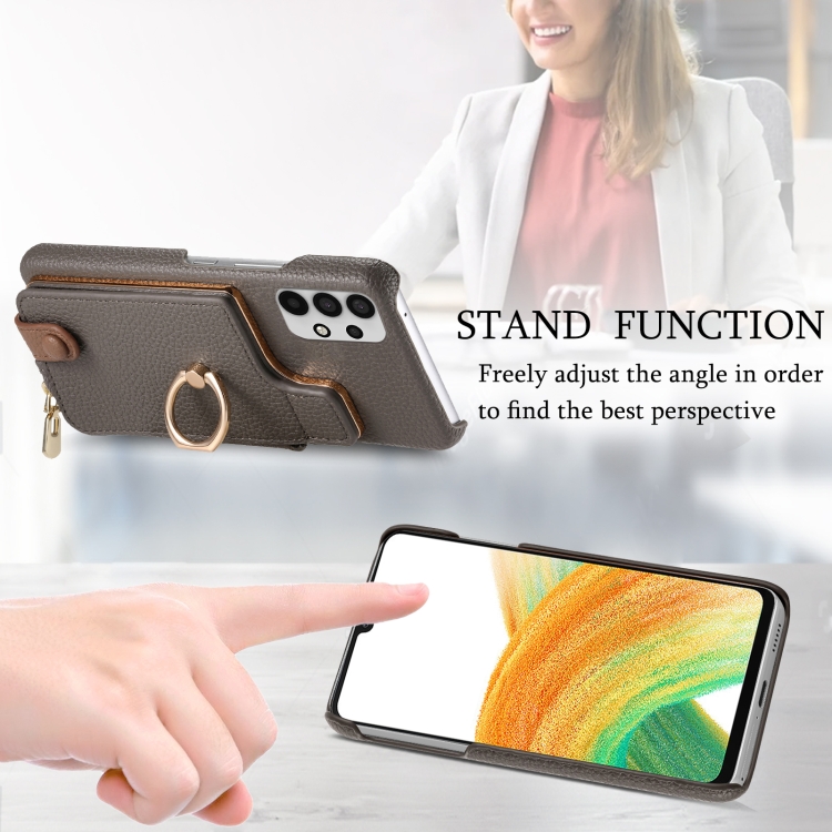 Funda para Teléfono Samsung Galaxy A33 5G Litchi Leather Oil Edge Ring Zipper Wallet Back (Gris)