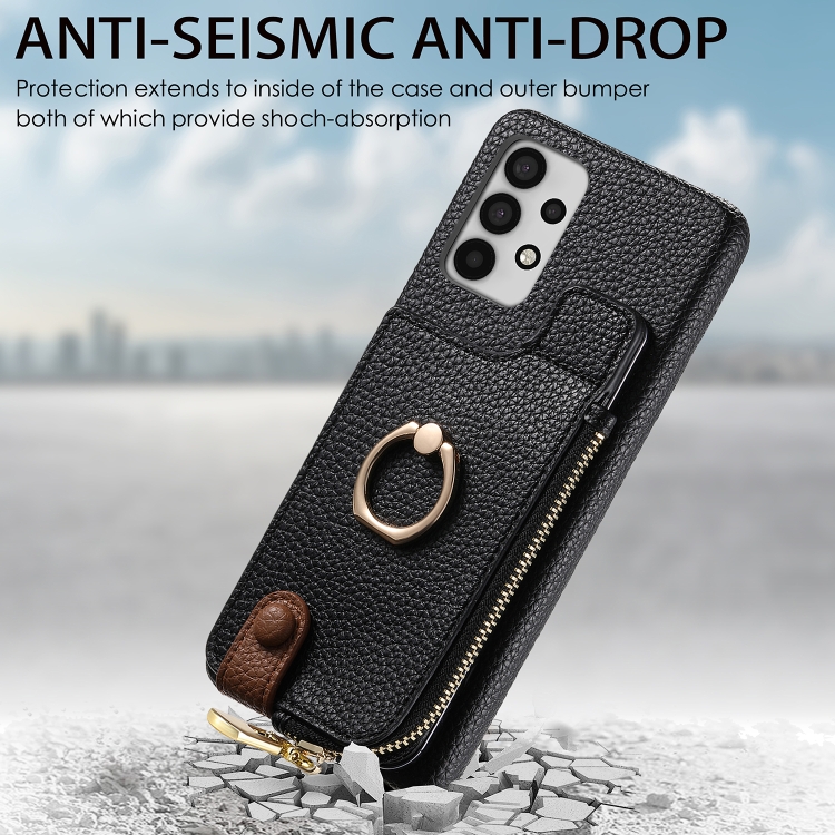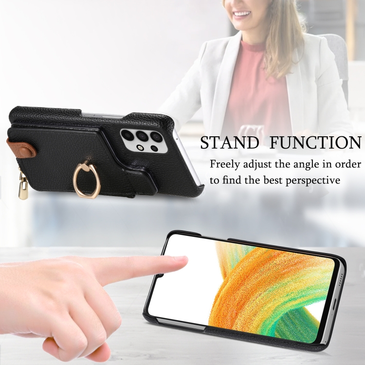 Funda para Teléfono Samsung Galaxy A33 5G Litchi Leather Oil Edge Ring Zipper Wallet (Negro)