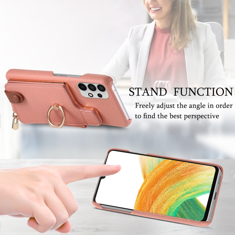 Funda para Samsung Galaxy A33 5G Litchi Leather Oil Edge Ring Zipper Wallet Back (Rosa)