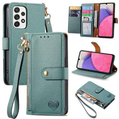 Funda para Samsung Galaxy A33 5G Love Zipper Lanyard Cuero para Teléfono (Verde)