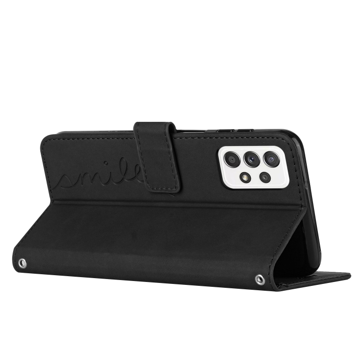 Funda de Cuero Samsung Galaxy A33 5G Skin Feel Heart Pattern con Cordón (Negro)