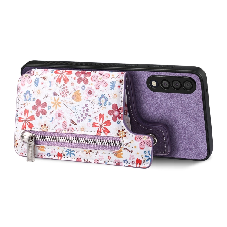 Funda Trasera Samsung Galaxy A34 5G con Billetera y Cremallera Pintada Retro (Púrpura)