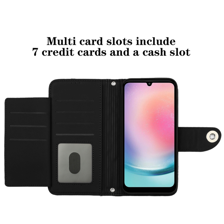 Funda de Cuero para Samsung Galaxy A34 con Tapa Textura Rómbica y Cordón (Negro)