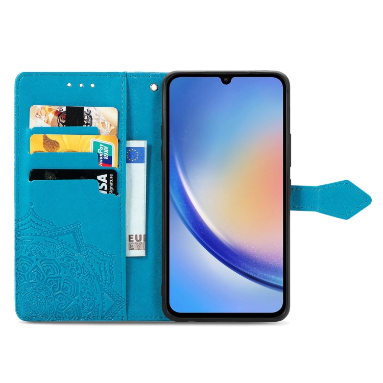 Funda para Teléfono Samsung Galaxy A35 5G Cuero Relieve Flor de Mandala (Azul)