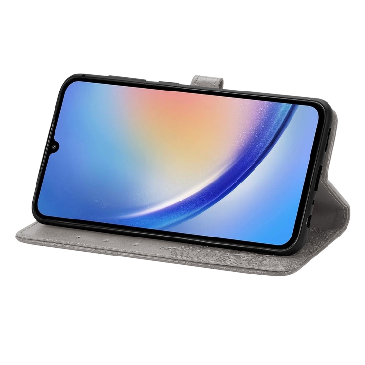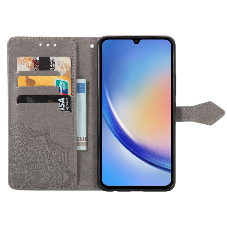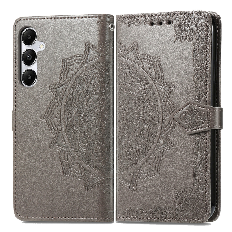 Funda para Teléfono Samsung Galaxy A35 5G Cuero con Relieve de Flor de Mandala (Gris)