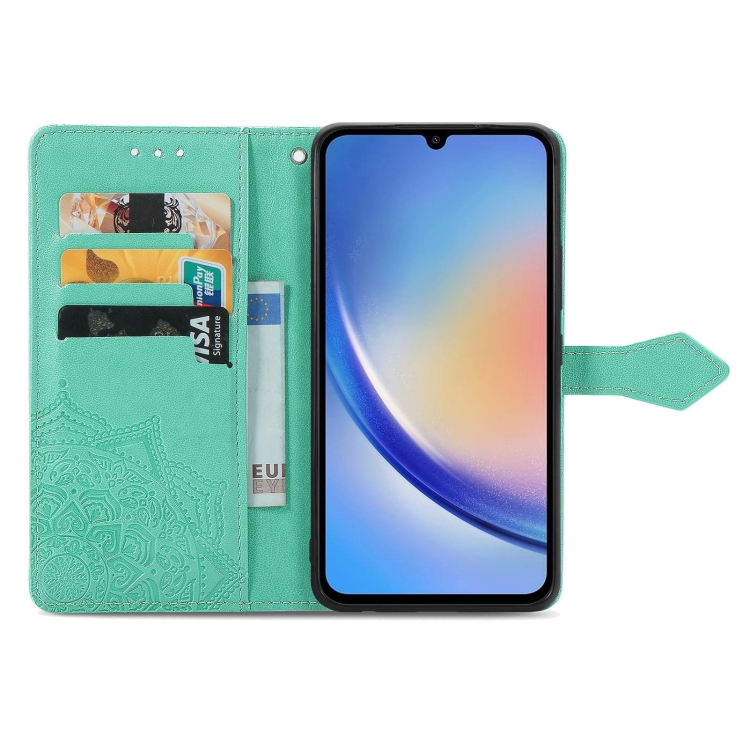 Funda para Teléfono Samsung Galaxy A35 5G Cuero Relieve Flor de Mandala (Verde)
