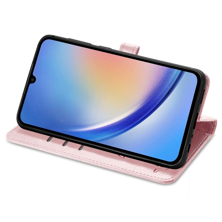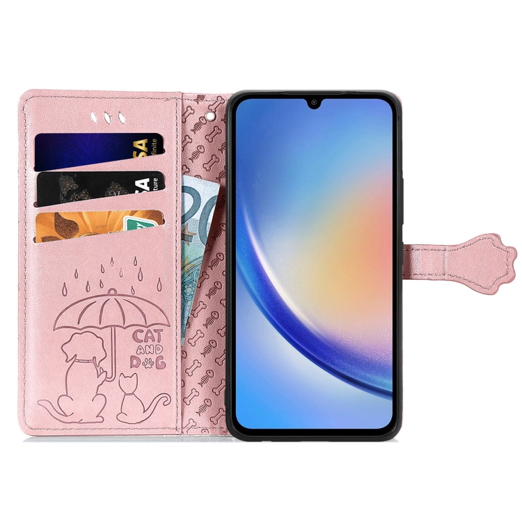 Funda para Teléfono Samsung Galaxy A35 5G Cuero Relieve Perro y Gato (Oro Rosa)