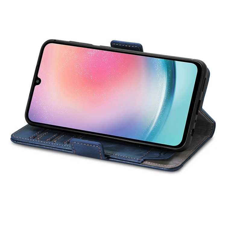 Funda para teléfono Caseneo Splicing para Samsung Galaxy A35 con hebilla magnética dual (Azul)
