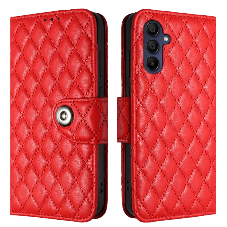 Funda de Cuero para Samsung Galaxy A35 con Tapa Textura Rómbica y Cordón (Rojo)