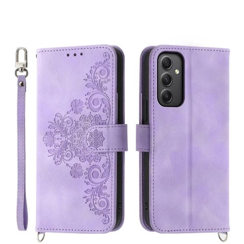 Funda para Teléfono Samsung Galaxy A35 Cuero con Billetera En Relieve y Flores (Púrpura)