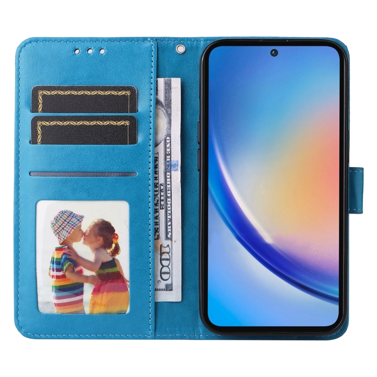 Funda para Teléfono Samsung Galaxy A35 Cuero con Girasol en Relieve (Azul)