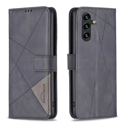 Funda para Teléfono Samsung Galaxy A35 Cuero Textura de Rombo Hebilla Magnética (Negro)