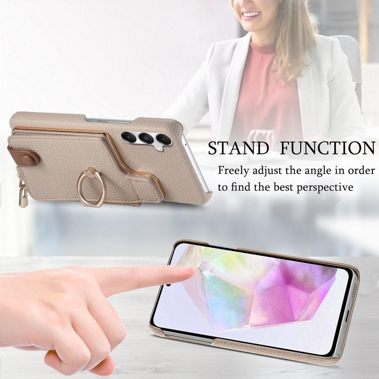 Funda para Teléfono Samsung Galaxy A35 Litchi Leather Oil Edge Ring Zipper Wallet Back (Blanco)