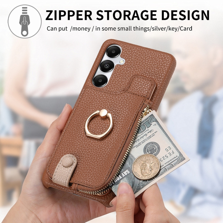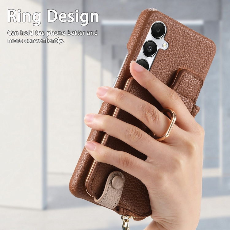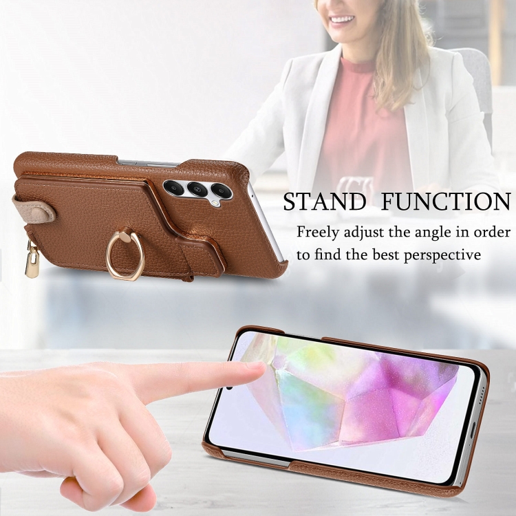 Funda para Teléfono Samsung Galaxy A35 Litchi Leather Oil Edge Ring Zipper Wallet Back (Marrón)