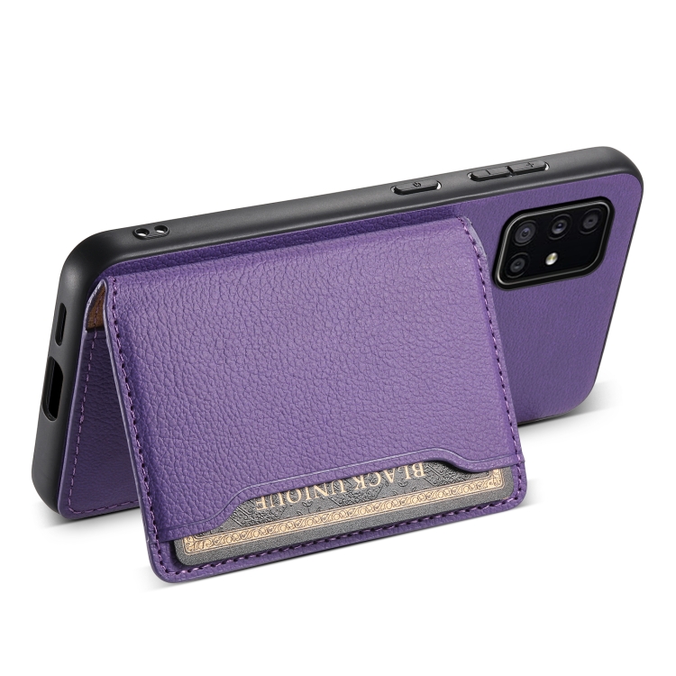 Funda para Teléfono Samsung Galaxy A51 4G con Diseño de Bolsa para Tarjetas y Textura de Becerro (Púrpura)