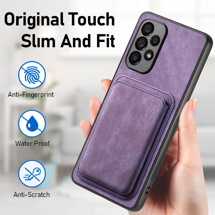 Funda de teléfono Samsung Galaxy A51 5G magnética con bolsa de tarjeta de cuero retro (Púrpura)