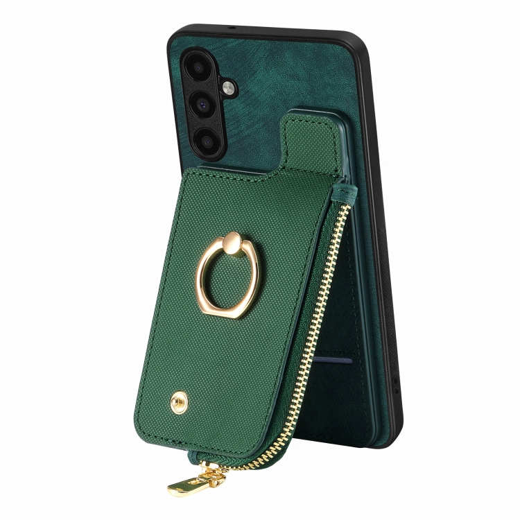 Estuche para teléfono Samsung Galaxy A51 con billetera, cremallera vertical y anillo de cuero cruzado (Verde)