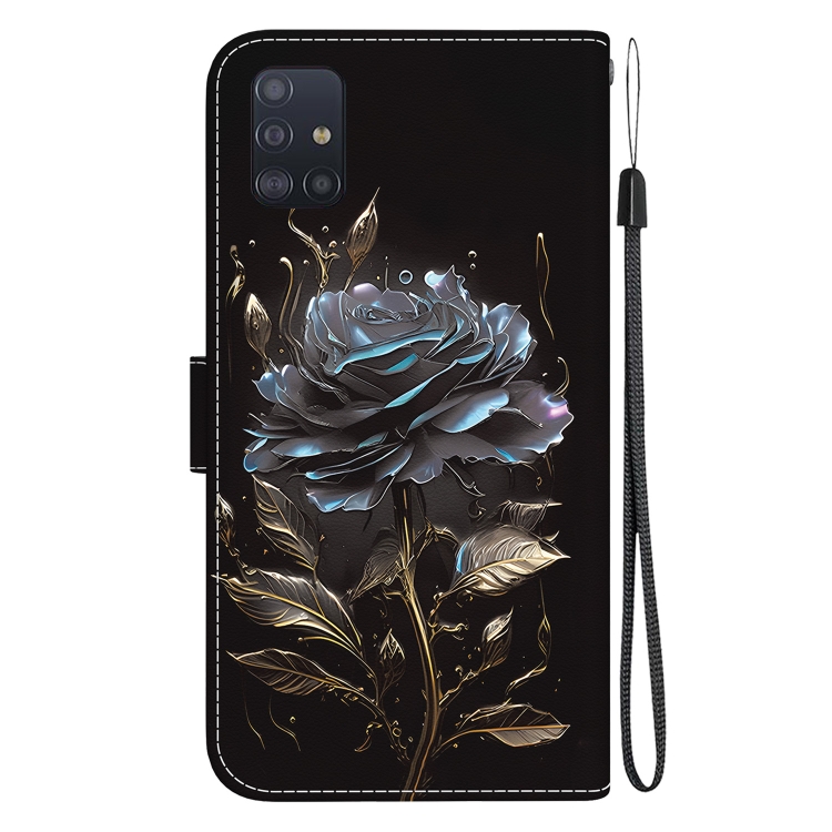 Funda de Cuero Samsung Galaxy A51 Dibujo Coloreado Textura de Cristal (Rosa Negra)