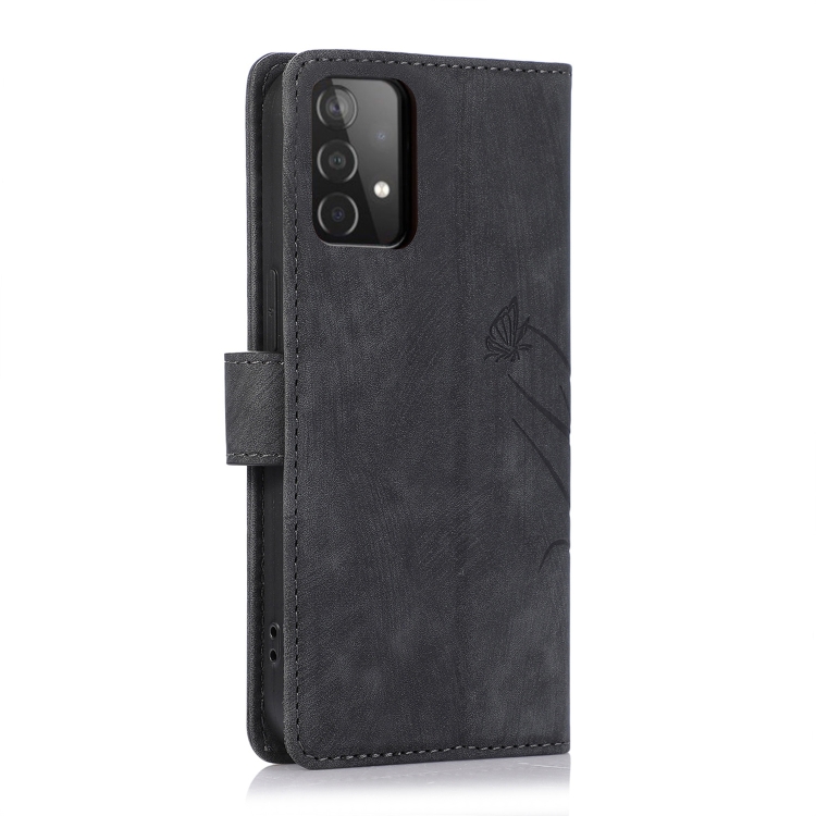 Funda para Samsung Galaxy A52 4G y 5G Cuero Relieve Mariposa Orquídea (Negro)