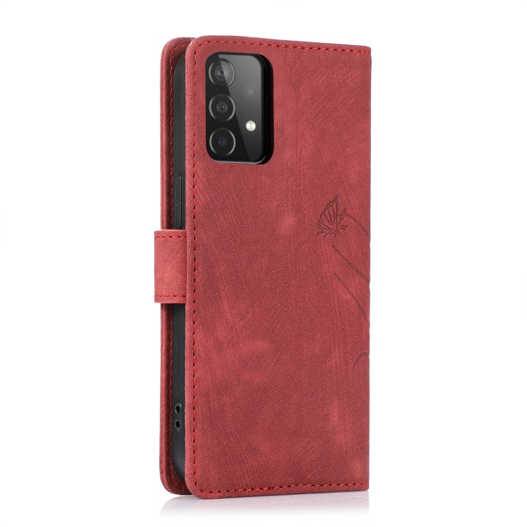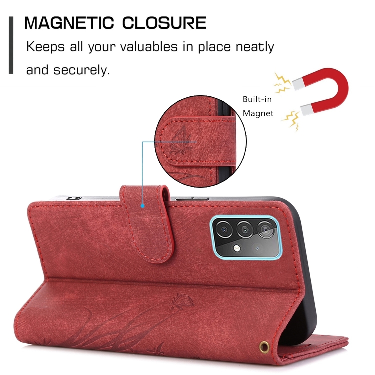 Funda para Teléfono Samsung Galaxy A52 4G / 5G Cuero Relieve Mariposa Orquídea (Rojo)