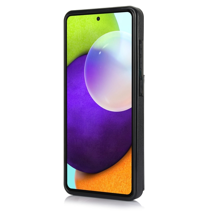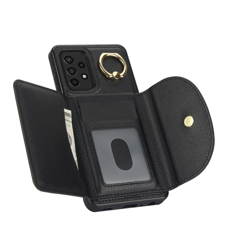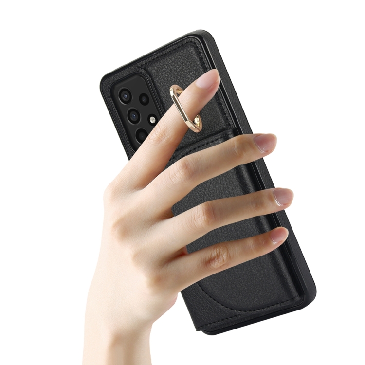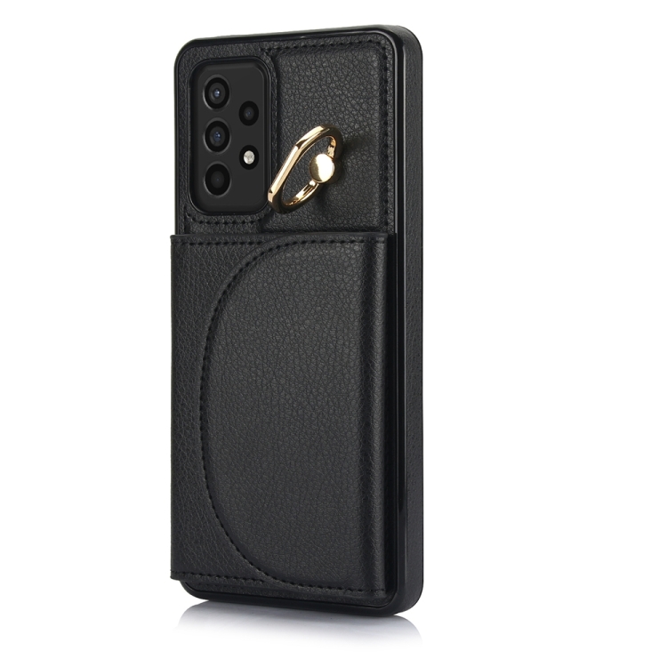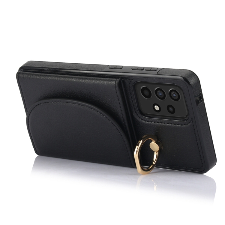 Funda para Teléfono Samsung Galaxy A52 4G y 5G Ym007 con Soporte para Anillo y Tarjeta con Sensación de Piel (Negro)